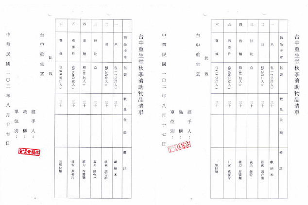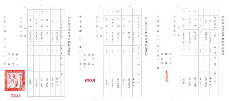 本次重生堂與北區公所合作,發放物資共計四百多家戶 。